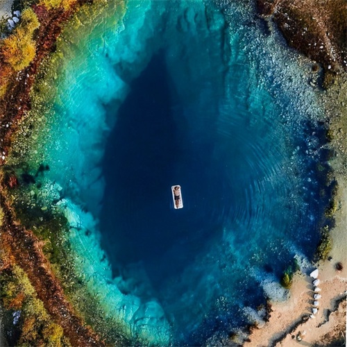 这么巨大的水下洞穴,好像能吞噬一切一样。居然还会有人在悠闲地飘荡。