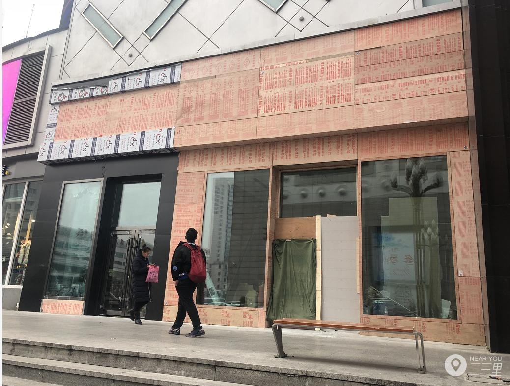 二三里资讯在事发现场看到,倾倒的广告牌围挡已经被清理干净,装修的店面漏出装修隔板。