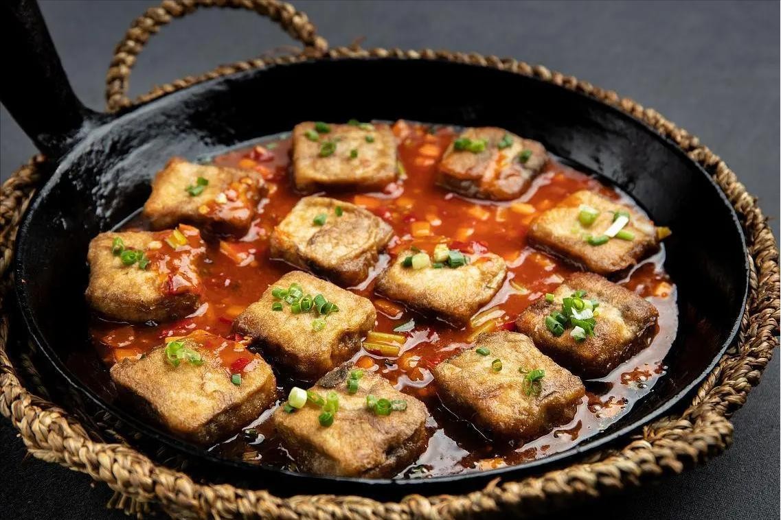 安徽毛豆腐,是安徽省的传统名菜,以其独特的发酵工艺和鲜美的口感而著称。毛豆腐经过精心发酵,表面长出了一层细密的白色茸毛,看起来或许有些特别,但口感却十分鲜美滑嫩。搭配辣椒酱或酱油食用,更是美味无穷。