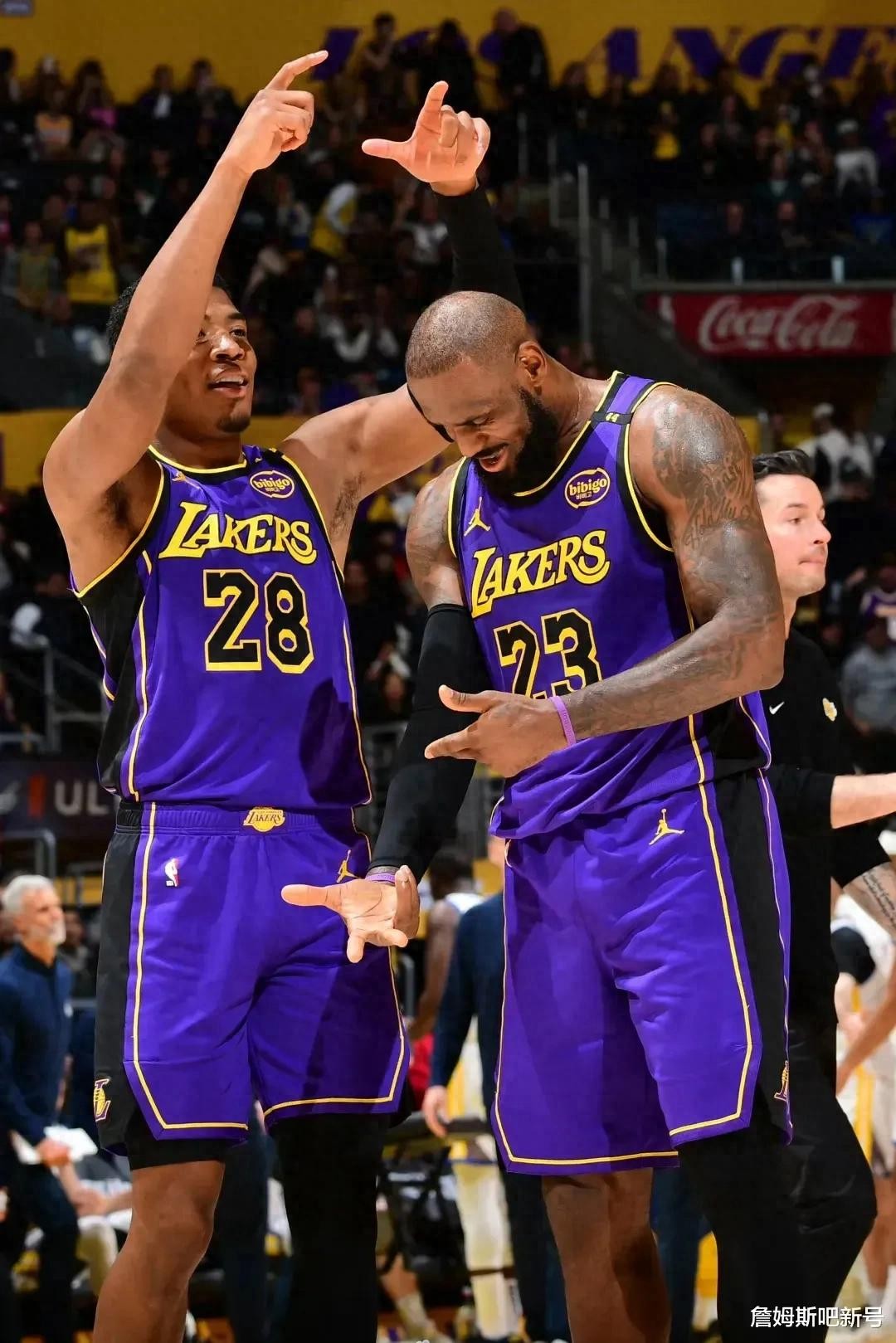 1. 湖人双核:詹姆斯与东契奇 詹姆斯在本赛季场均能够贡献24.3分、7.7个篮板以及9次助攻,依旧是球队在攻防两端的枢纽人物。东契奇自交易加盟湖人队之后,场均可以拿下26.5分、8.1个篮板和7.5次助攻,但是近期他的三分命中率波动幅度较大(对阵黄蜂队时三分球9投1中),急需提升其稳定性。倘若两人能够在挡拆和快攻战术中成功激活角色球员,那么湖人队的进攻将会更具威慑力。
