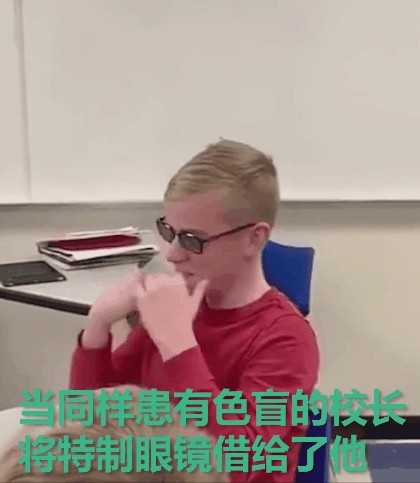 第十八张:患有色盲症的孩子,戴上了专用的眼镜,第一次看到这多彩的世界,激动得哭了,也许这就是科技进步的意义吧。