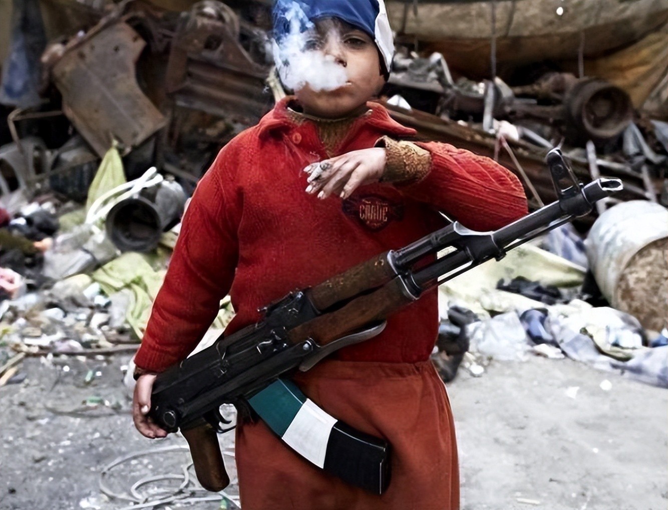 第九个:叙利亚的一名7岁的小男孩儿,本应该天真无邪的年纪,战争却让他早早成长,变成了大人模样。