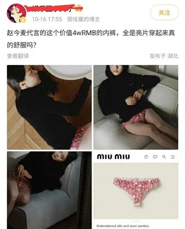 赵今麦最新硬照翻车!4万多内裤外穿,百万网红吐槽疯马秀工作服