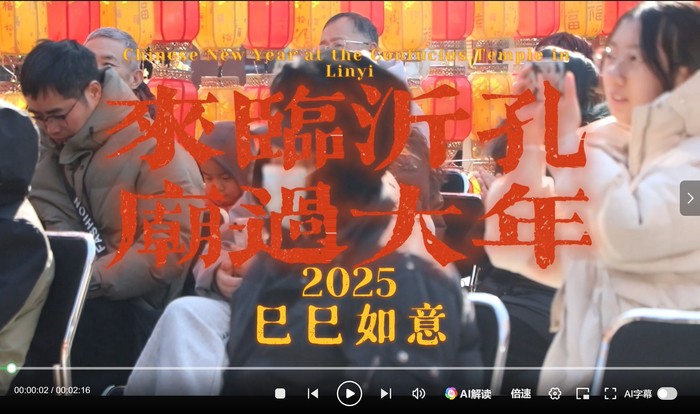 以上为视频截图,作者拍摄于临沂孔庙。春节期间,临沂孔庙举办“孔庙里过大年守住老城记忆”春节庙会系列活动,热闹非凡。来自全国各地的游客走进临沂孔庙,观看地方特色演出,体验非遗年俗,在欢声笑语中切身感受临沂老城区的温暖年味。(作者:于世楷)
