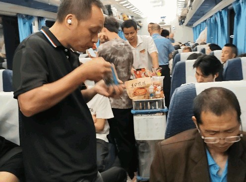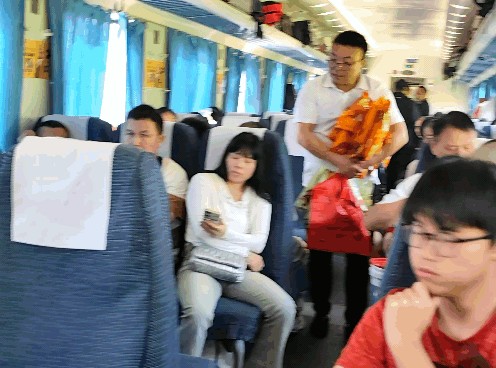 3号车厢乘客多,新疆乌梅一会儿就卖光了。一会儿,卖水果的乘务员过来了,然而,他的水果生意并不好,没几个人买。同是卖货的乘务员结果大相径庭!
