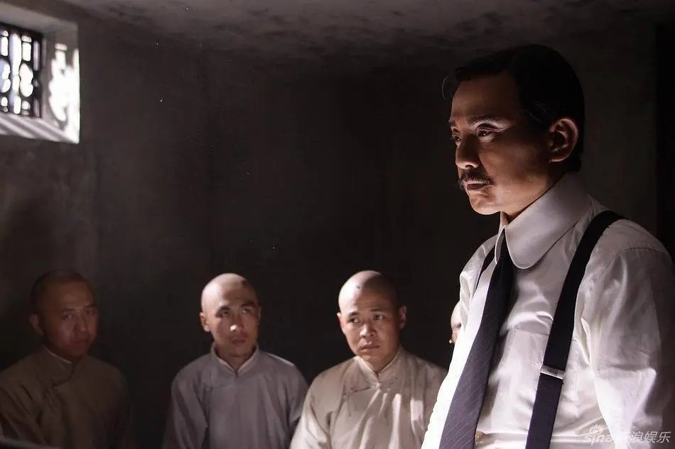 作为硬汉代表的胡军更是剃掉眉毛,饰演了清廷的鹰犬,令人不寒而栗。