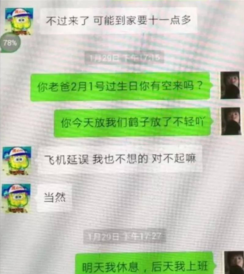 母亲已经很久没有和女儿通话,很不高兴,朱晓东从微信聊天中感觉到了,便用妻子的微信撒娇地回复:“飞机延误,我也不想的,对不起嘛。”