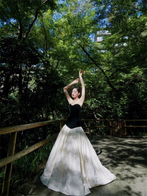 在之前的红毯活动上张天爱选择了一件黑白拼色的抹胸裙。抹胸式的造型,能很好的凸显精致的锁骨和迷人的颈部线条,看起来十分优美。黑与白两种极致的颜色形成鲜明的对比,给人以强烈的视觉冲击感,更是轻松凸显曼妙的腰身,显得甜美又可人。