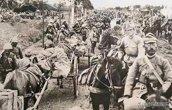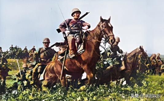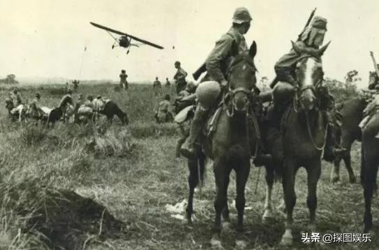 11.日寇进攻安阳行动,最前面的士兵骑着马,拿着枪,看上去很兴奋。