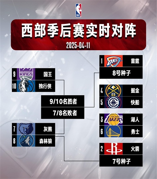 灰熊不敌森林狼,因胜负关系劣势下滑至第七,勇士则升至第六;