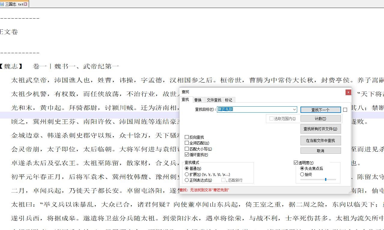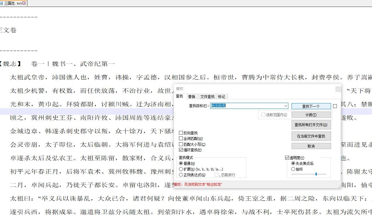 不信我们直接打开三国志的文本,搜索寒芒先到,枪出如龙这两句,根本就没有任何相关内容。