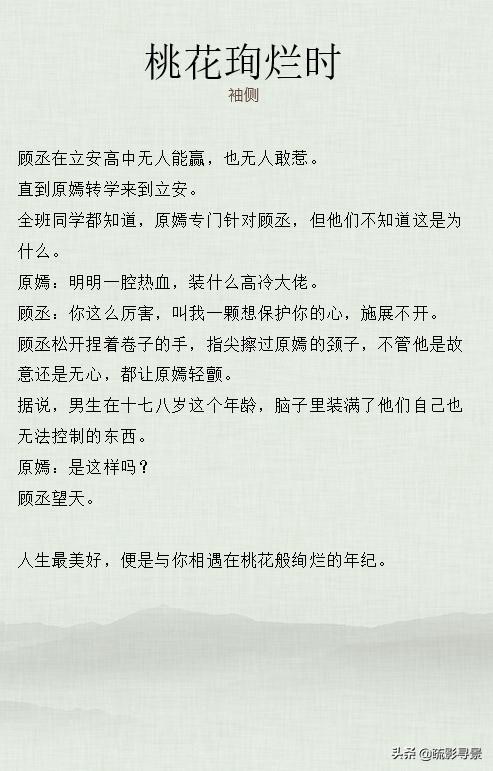 袖侧的《桃花珣烂时》高中,校园日常,小甜饼,1V1,女主獠牙锋利软萌小奶猫,男主霸气温柔冷厉小狼狗。