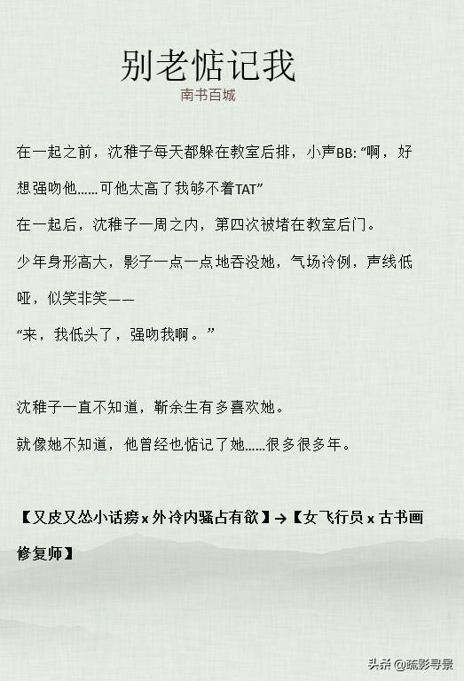 南书百城的《别来惦记我》双学霸/双向暗恋/校服到婚纱/漫天撒糖,很甜很宠。