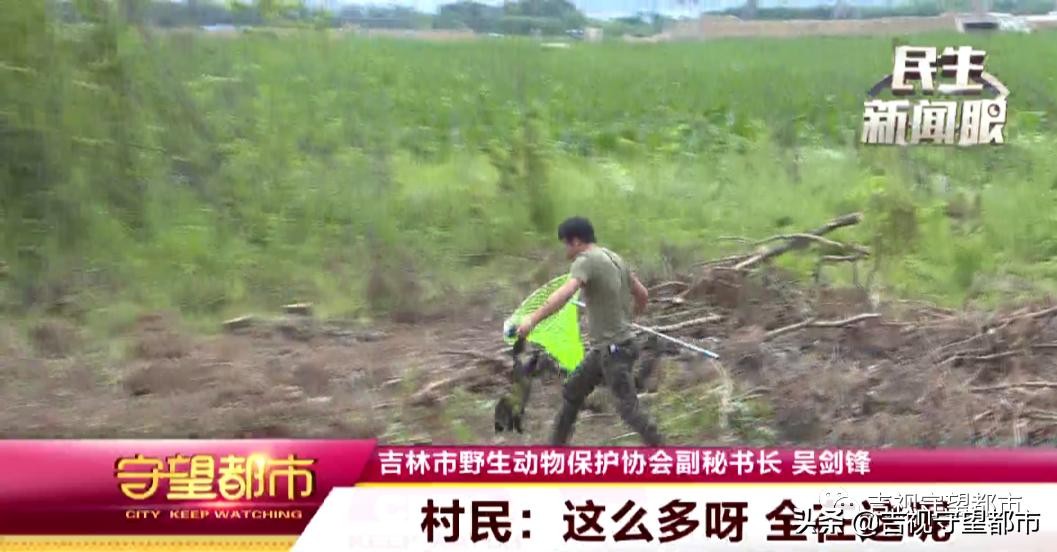 随后,吉林市野生动物保护协会的吴剑锋拿出了一个大网,在村民们的协助下,开始对现场的狐狸进行捕捉。