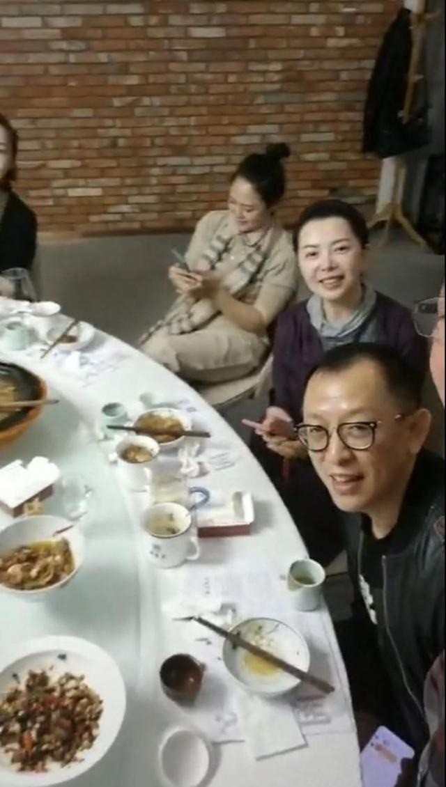 和一众老友合影中,即使坐在一边她也是全场最瞩目的焦点。