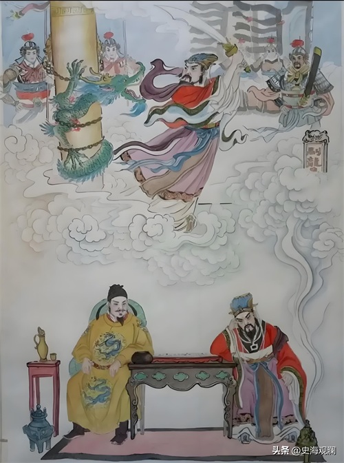 最耐人寻味的是《西游记》第十回"老龙王拙计犯天条":泾河龙王为赌局私改雨量,竟被魏征梦中所斩。这场看似荒诞的剧情,实则是天庭对龙族规训的完美隐喻:连施雨分寸都被纳入官僚化管理,龙王的所谓权柄不过是精密运转的天道机器中一颗螺丝钉。