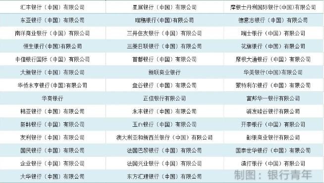 名单要是列出来实在太长了,只贴一个外资银行名单感受一下。