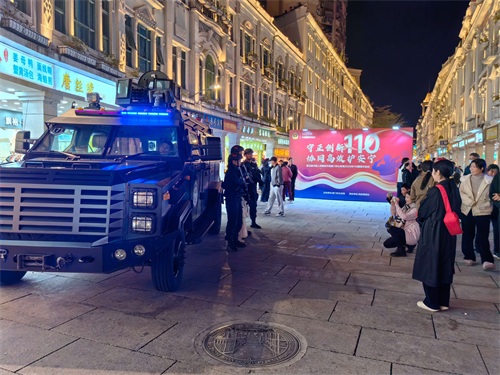 6日晚上7点左右,中山路步行街上人声鼎沸,气氛热烈,10 余个展区依次排开,涵盖了110指挥情报中心、巡特警、交警、禁毒、警犬、警用无人机、禁毒、出入境、经侦、志愿救援队伍等多个领域。群众们兴致勃勃地穿梭其中,大家不时摸摸警用装备,或拿起掂量掂量过过瘾。精彩的枪操、特警擒拿术、警犬和警用无人机表演,更是让群众们看得拍手称好。“夜市110”游园会上,群众们手持游园票,积极参与“集章打卡”活动,在各个展区之间打卡,每完成一个活动就能获得一个印章,集满6个游戏章便可参与抽奖,赢取警车、警熊、110主题挎包、徽章、台历等精美礼品。