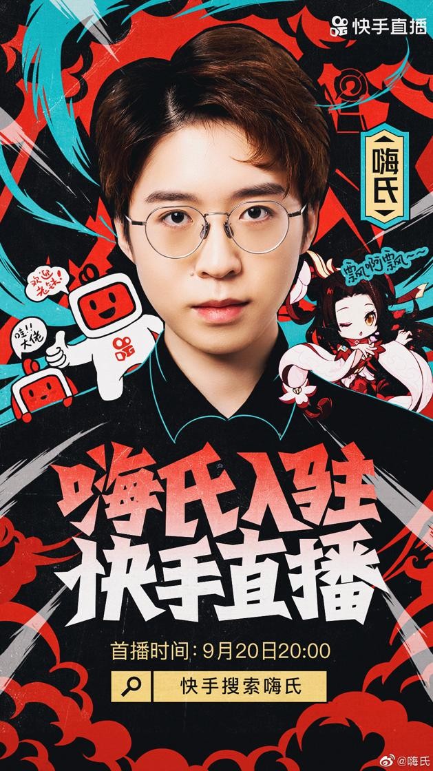 9月19日,《王者荣耀》主播嗨氏在微博宣布将于9月20日晚在快手开播。