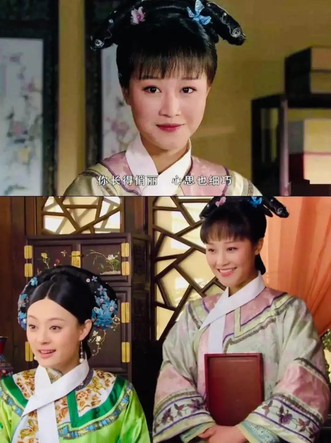 再看金锁,在《还珠格格》里常年以丫鬟扮相示人,朴素的穿着、简单的发型,毫无亮点可言。没有那能让人眼前一亮的妆造和氛围烘托,就好比一位有天籁之音的歌手,站在简陋的街边舞台,难以展现其真正魅力。