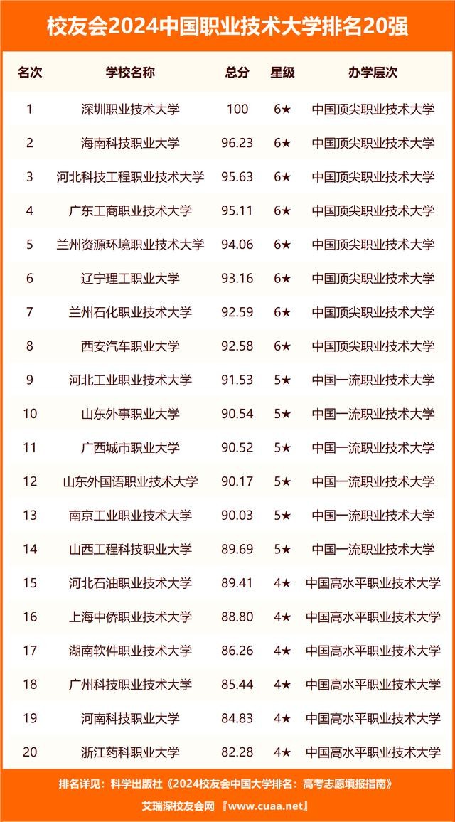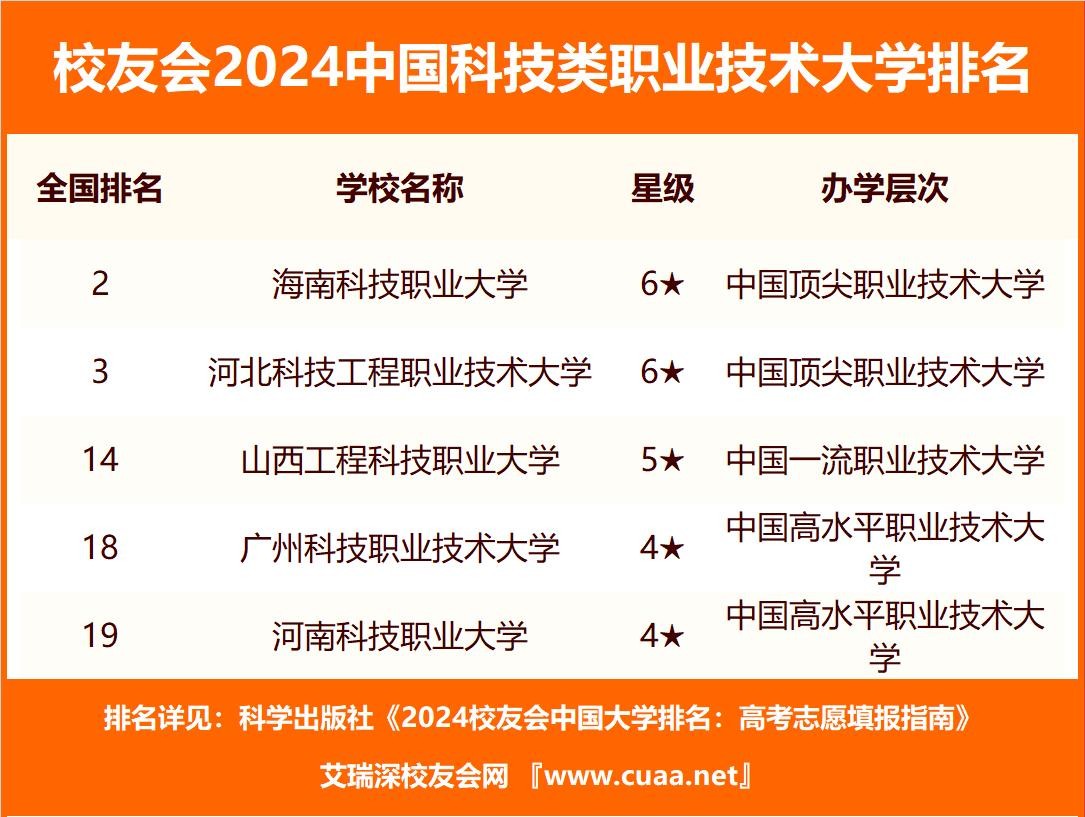 海南科技职业大学雄居2024中国科技类职业技术大学排名第一,河北科技工程职业技术大学第二