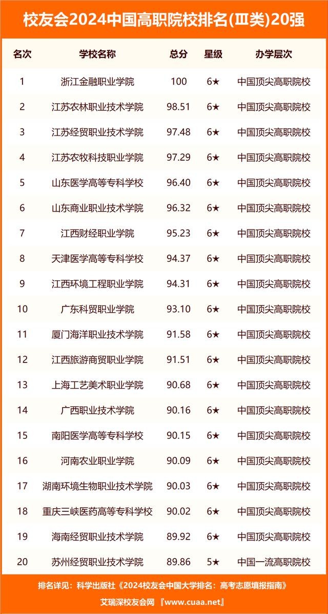 在校友会2024中国高职院校排名中,江苏农牧科技职业学院综合办学实力最强、最具竞争力、办学水平最高,全国排名第4名,位居校友会2024中国科技类高职院校排名第一,荣膺2024中国六星级高职院校(6★)美誉,跻身中国顶尖高职院校行列。