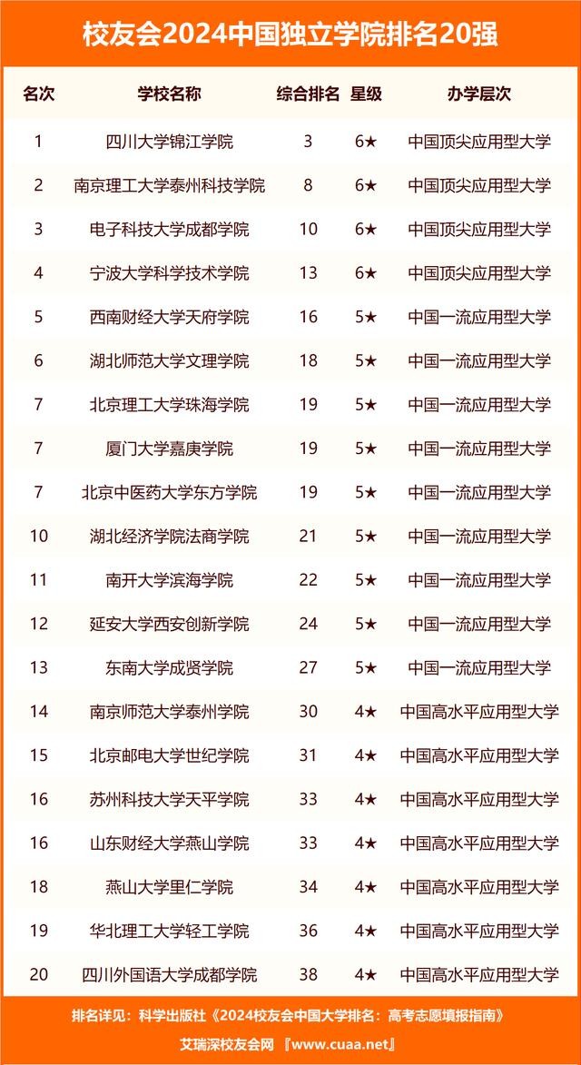 南京理工大学泰州科技学院、广东科技学院雄居2024中国科技类民办大学排名第一,电子科技大学成都学院前三