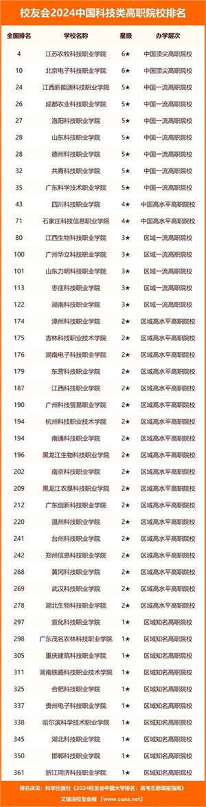 江苏农牧科技职业学院高居2024中国科技类高职院校排名榜首,洛阳科技职业学院前五