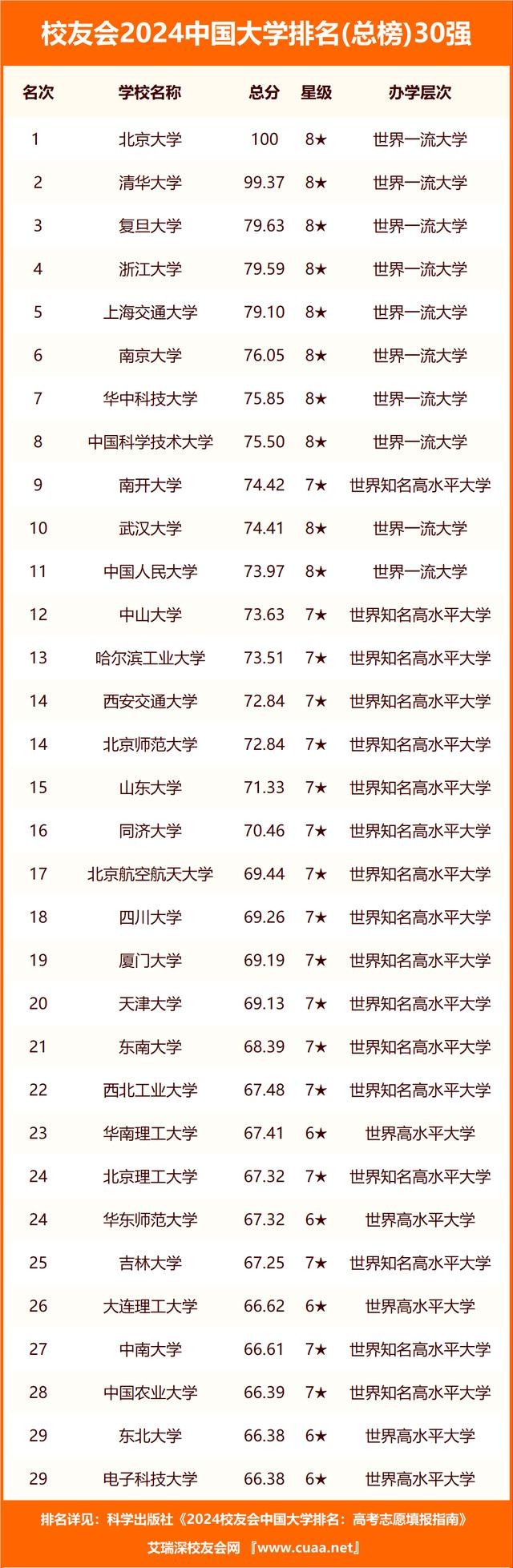中国科学技术大学、华中科技大学荣膺2024中国八星级大学(8★)美誉,跻身世界一流大学行列。