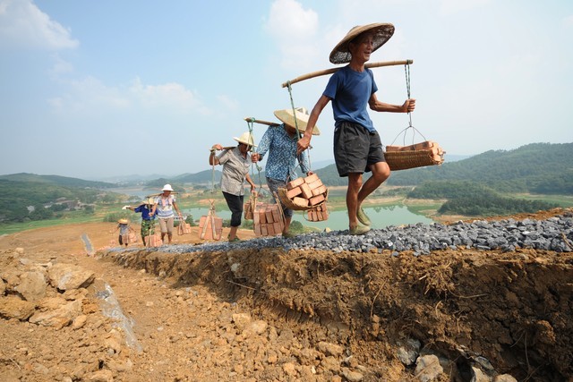 “提夯!”康田生给木模里装饱了土,命令说。