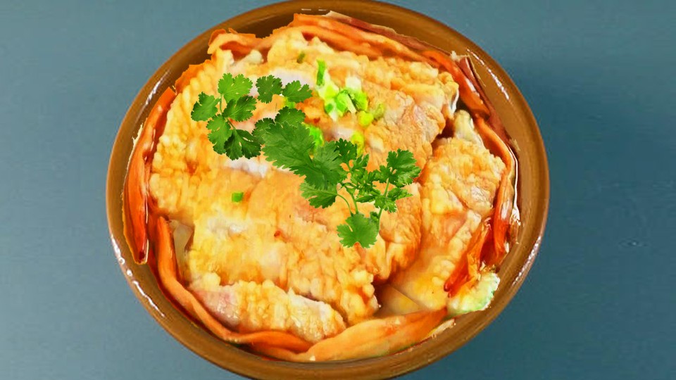 蒸酥肉是传统九碗宴席上的必备蒸菜,在四川及西南地区是“逢大席,必有之”。 蒸酥肉又称上汤蒸菜,它有两道大工序:先油炸再蒸制。
