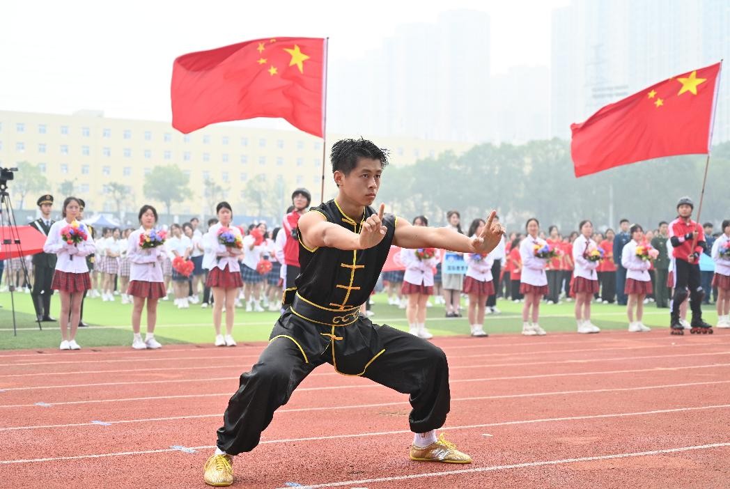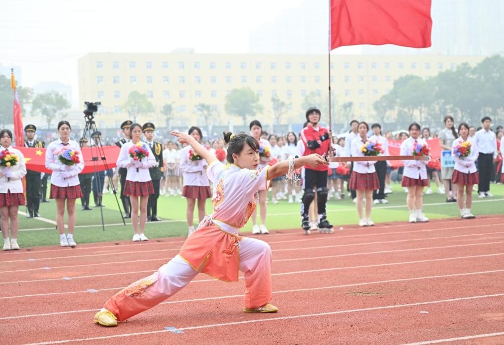 “一刀一剑舞出青春风华,一笔一划勾勒出国韵风采。”该校体育学院副院长戴飞表示,采用形式多样的方阵展示,不仅能给同学们一个真正展示自我风采和勇气的舞台,也有利于宣扬专业精神和竞技魅力。(通讯员:李怡臻 王欣怡 摄影:张植)