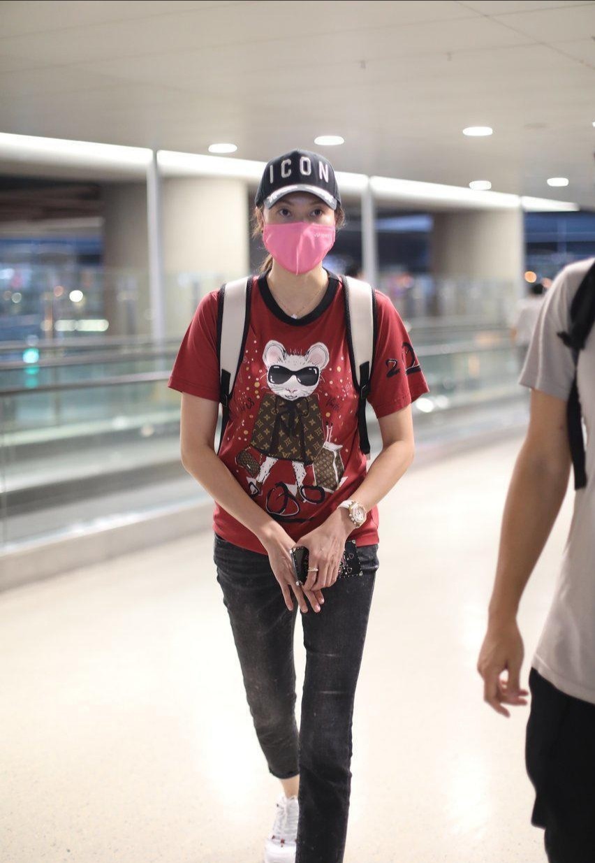 谢杏芳日常偏向于休闲的运动风,这款圆领T恤特别有设计感,胸口的动物图案童趣十足,减龄又俏皮。下装搭配紧身牛仔裤展现高挑身材,时髦得毫不费力。