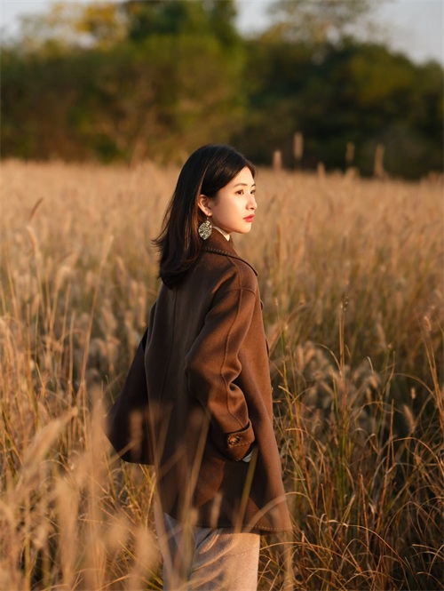 身体侧对镜头,然后回头微笑。这个姿势在户外拍照中尤其受欢迎,它既简单易学,又能捕捉到自然的笑容和轻松的氛围。落落大方,简单易学、气质漂亮。