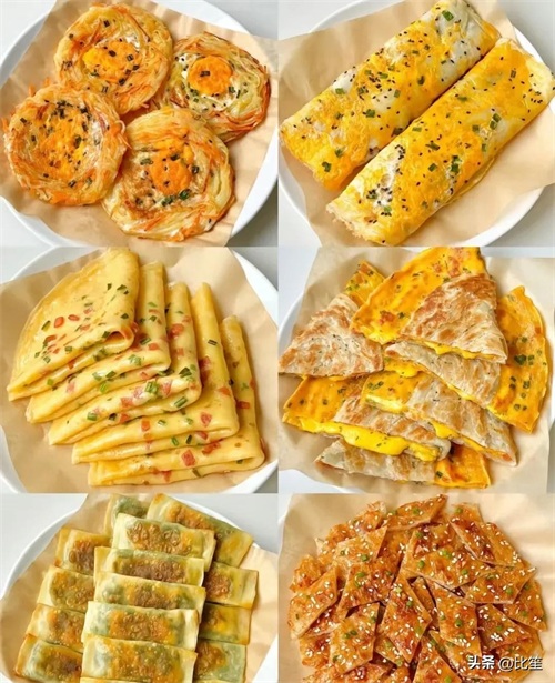 鸡蛋饼:将鸡蛋打散,加入少量面粉和水搅拌均匀,煎至两面金黄即可。可以根据个人口味加入蔬菜、火腿等食材增加营养和口感。