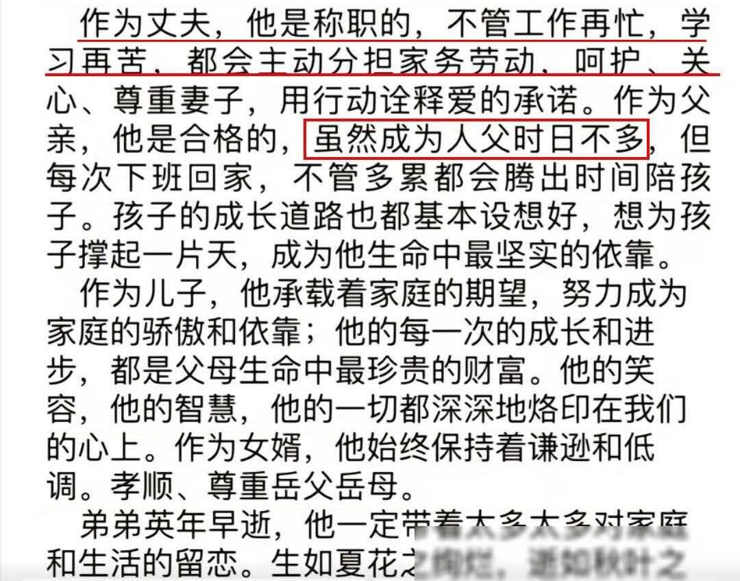 此外,潘博文的兄长表示,潘博文曾一度迎来宝贝儿子的到来,家庭生活刚步入正轨,这时他却突然离世,无疑给家庭带来巨大打击。尽管工作繁忙,潘博文仍毫无保留地帮助妻子分担家务,关爱尊重她,共同照看孩子。他对父母敬重备至,寄托着全家人的期望,作为女婿更是体贴尊重岳父岳母。