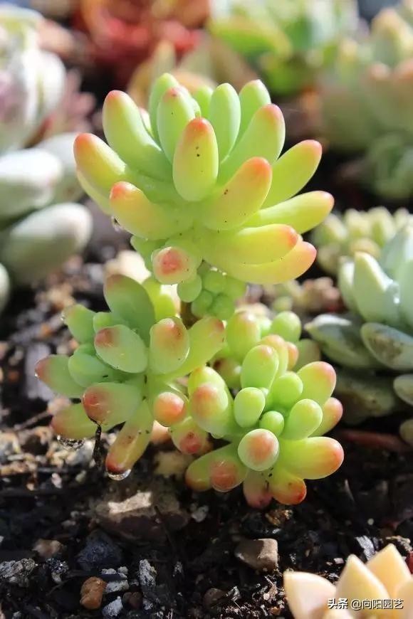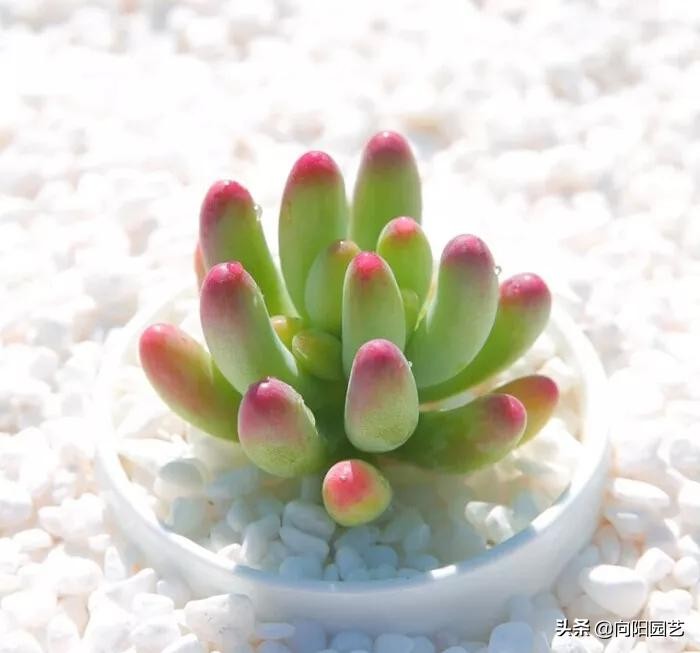 通常养多肉大家会用营养土去养护,养乙女心的时候,配土只能用一半,另一半用火山石,或者颗粒土代替,小石子的吸热能力强,能更好的吸收太阳光的热量,配置土壤的时候可以在土壤中添加一部分的骨粉用作多肉的吸收。养护的环境最好是“通风”的透气的最好,可以避免黑腐的出现。