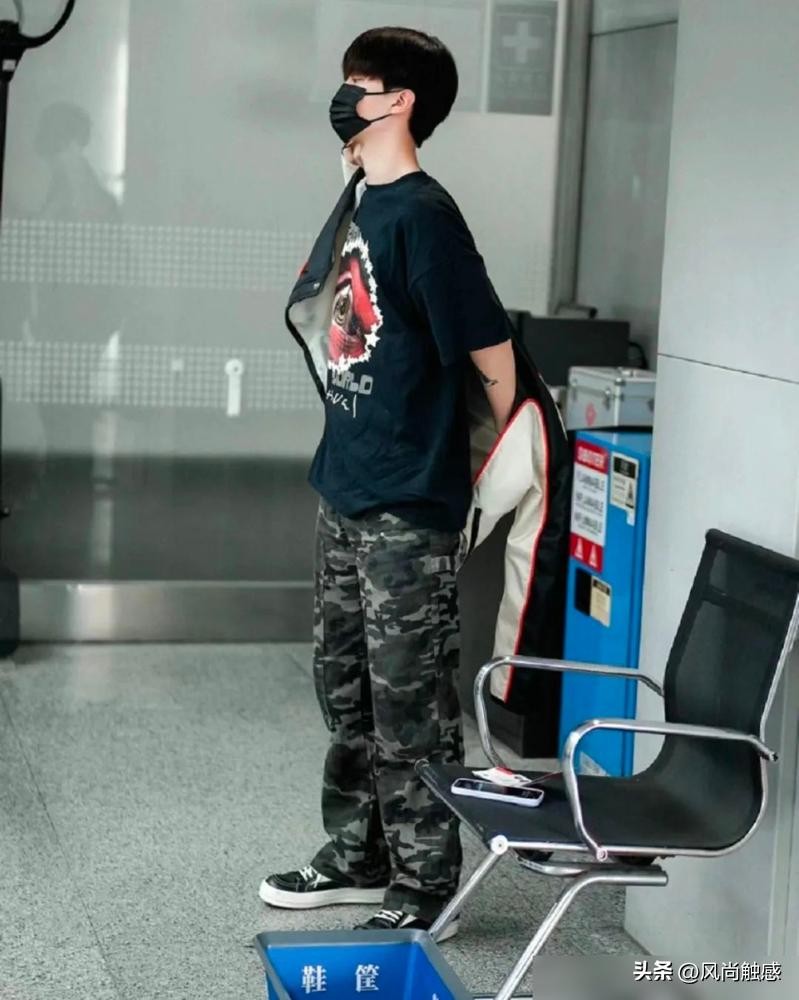 但是,你看他在迷彩裤的搭配中,不仅将自己小巧的身体衬托得活力十足,还能通过迷彩元素提升时尚感,这就绝对会打脸那些质疑他品位的人。
