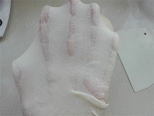 2、开始下手将上述混合在一起的食材揉成一个光滑且有韧性的面团,揉好的面团,用手撑开后,是一下非常薄且不易破的状态,如图所示。(不会揉出所谓的这种手套膜的话,可以将上述面团尽量揉光滑,然后盖好保鲜膜醒发10分钟左右,最好是放冰箱中醒发,因为有放酵母,防止发酵过快,然后再取出来揉,这样就会很容易揉到这种状态,揉的时候尽量用搓洗的方式揉面)