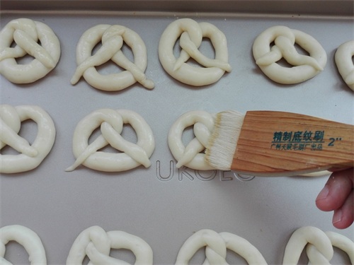 9、将做好的面团,表面轻轻地刷上一层薄薄的蛋液,表面所刷的蛋液制作是:1个蛋黄加15克水搅拌均匀即可。