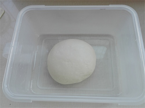 3、将揉好的面团,稍做整理,放入密封盒中,开始进行发酵,如图所示。