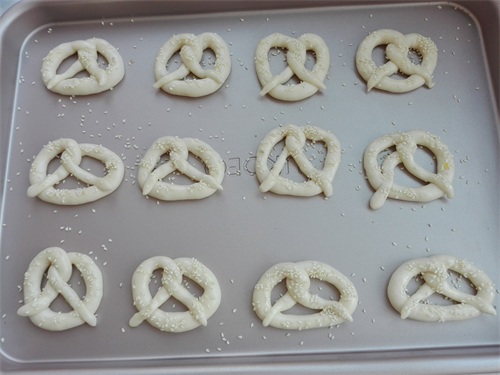 10、在刷过一层蛋液的表面,撒上适量白芝麻或者白砂糖做以装饰,如图所示。