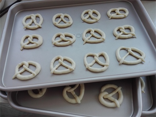 8、依次将所有的面团全部如上述所操作,操作中尽可能直接在烤盘上进行整形,如图所示。