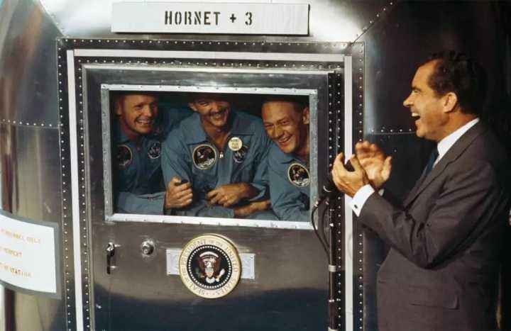 在两名宇航员成功脱困的消息传回地球后,时任美国总统的尼克松也大舒一口气,因为他终于不用向全世界宣布两名宇航员在月球遇难的消息了。