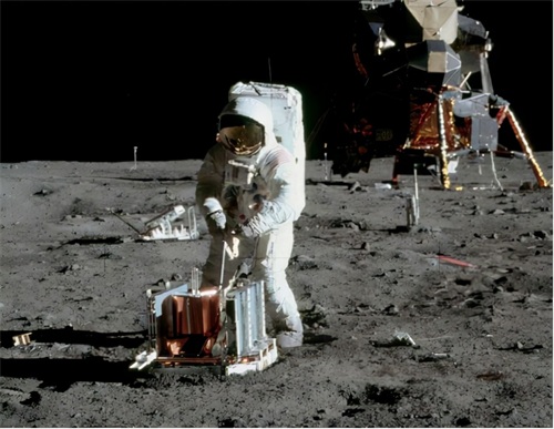 在长达数个小时的月面活动中,阿姆斯特朗和奥尔德林在月球上放置了大量科研设备,其中最著名的就是地月激光反射器,因为它的存在,让天文学家们从此有了快速测定地月距离的能力,并且发现了月球每年都在以3.8厘米的速度远离地球。