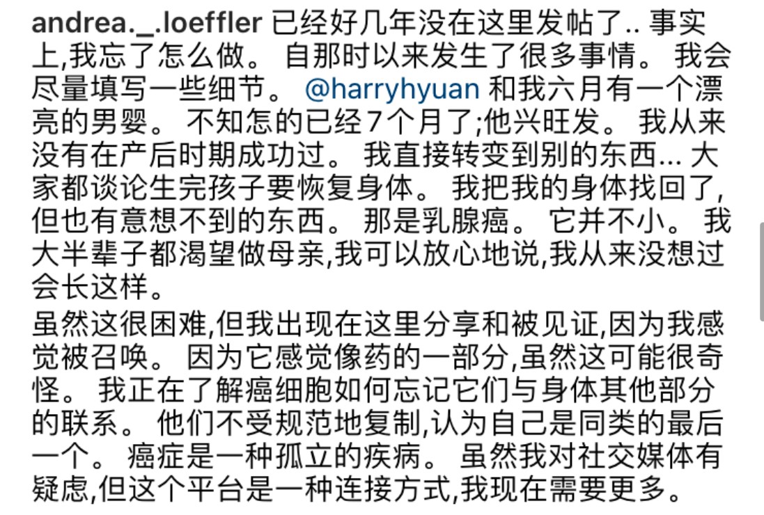在妻子公开了个人状况之后,原和玉也在社交平台上晒照分享了个人感受。他晒出的是一张儿子正在吸吮母乳的照片,他同样很难过也很感慨。他在文中表示妻子在感恩节期间意外发现患上了乳腺癌,这对他的打击很大,他自认与妻子都是非常有健康意识之人,结果还是要面对这样的问题。而他之所以会公开儿子吸吮母乳的照片,是为了纪念儿子最后吸吮母乳,因为之后妻子将要接受一系列的治疗。对夫妻俩而言,提前一年半断了母乳是一件很困惑的事情,好在的是得到了很多人的捐赠(牛奶),令他们减少了对孩子食物来源的担忧。