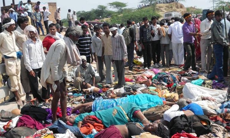 2013年10月13日,印度为了庆祝的“九夜节”,约有50万的信徒要前往印度中部的一所寺庙朝拜。在就途径一个大桥上,部分朝拜者想要插队,于是开始散布谣言说是大桥要塌了,没想到立马在人民群中引发恐谎。