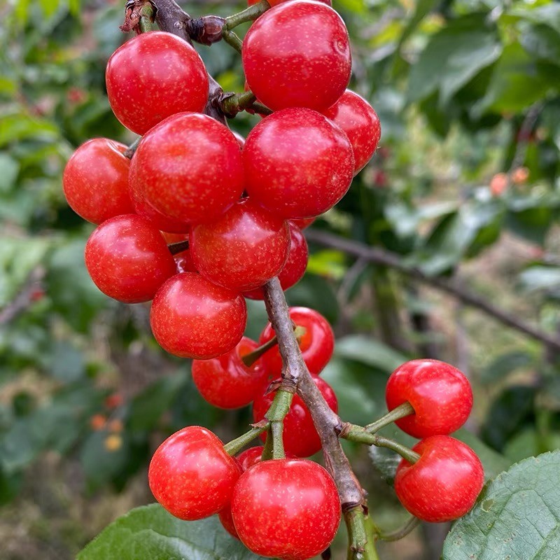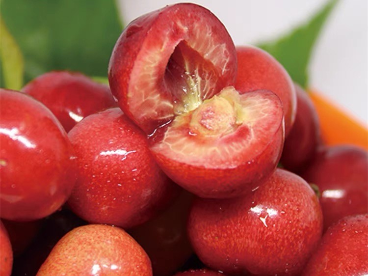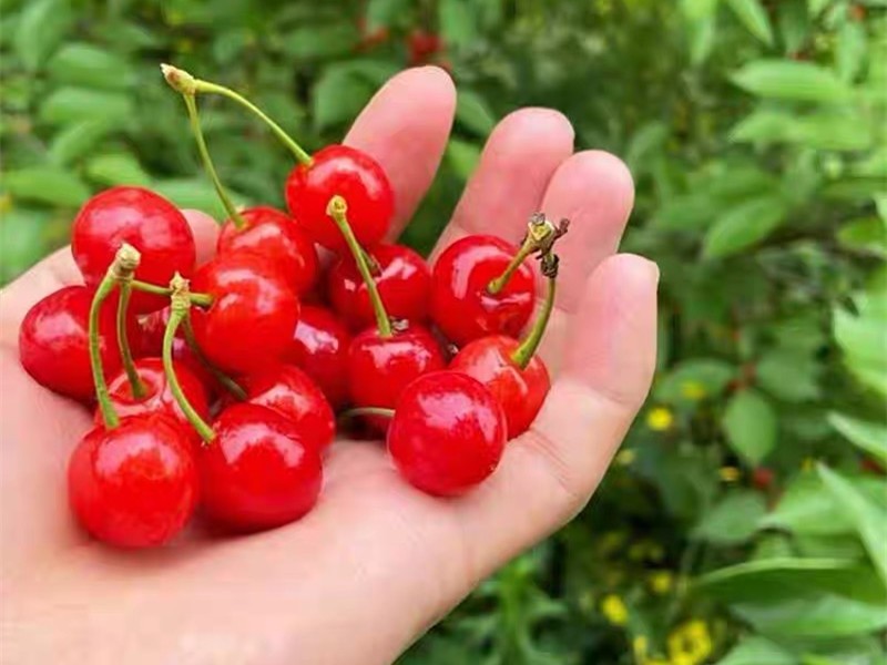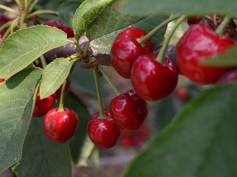 赫章樱桃果实大,呈圆球形,果实颜色为深红色,肉厚质细,吃起来微甜、风味浓,是一种高一款值得买的樱桃。