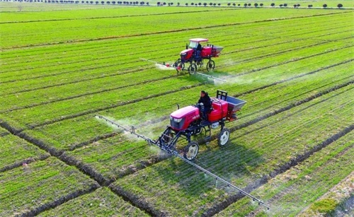 2025年2月20日,江苏省南通市高标准农田,农民开展病虫害防治作业 图片源自新华社