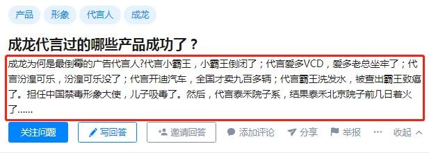 知乎上,更有网友称成龙是最倒霉的广告代言人,有“广告克星”之称: